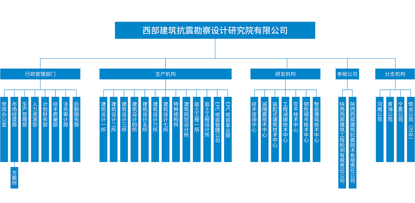 西部建筑抗震勘察设计研究院有限公司成立于1993年。上世纪90年代初,因西部地区地震形势严峻,在原国家建设部抗震办的大力支持和帮助下,成立了以工程抗震研究为特色的科技型企业——西部建筑抗震勘察设计研究院;于2017年12月改制为“有限公司”,为全资国有企业,隶属于中国500强——陕西建工控股集团。 西部建筑抗震勘察设计研究院有限公司具有岩土工程勘察、建筑工程设计双甲级资质和城乡规划乙级资质、建筑工程施工总承包二级资质,其入股的陕西西部建筑工程检测有限责任公司具有陕西省地基基础工程检测资质,入股的陕西西部建筑抗震技术有限责任公司是陕西省施工图设计文件审查一类机构。在河南、宁夏、汉中等地设有分支机构。 |